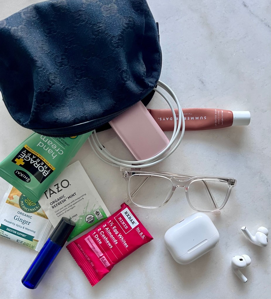 Bonus tip: I always wear a big hooded sweatshirt when I fly—planes are freezing. If I’m not wearing a hoodie, I bring a beanie. Thank me later.